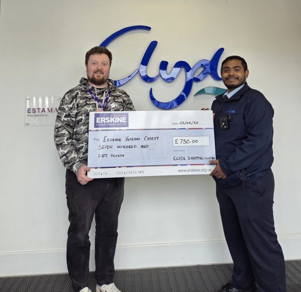 Clyde Shopping Centre’s Security Officer Tamal presented a cheque for £750 today